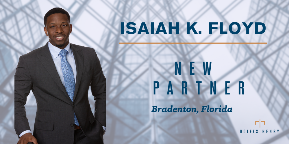 Rolfes Henry Announces Promotion of Isaiah K. Floyd Gallery Rolfes Henry Announces Promotion of Isaiah K. Floyd Firm Rolfes Henry Announces Promotion of Isaiah K. Floyd BRADENTON, [...] Rolfes Henry Announces Promotion of Isaiah K. FloydA M2025-02-19T10:37:51-05:00